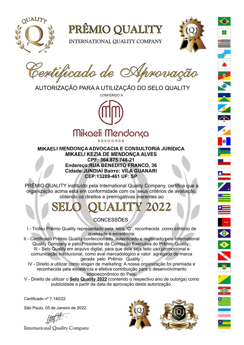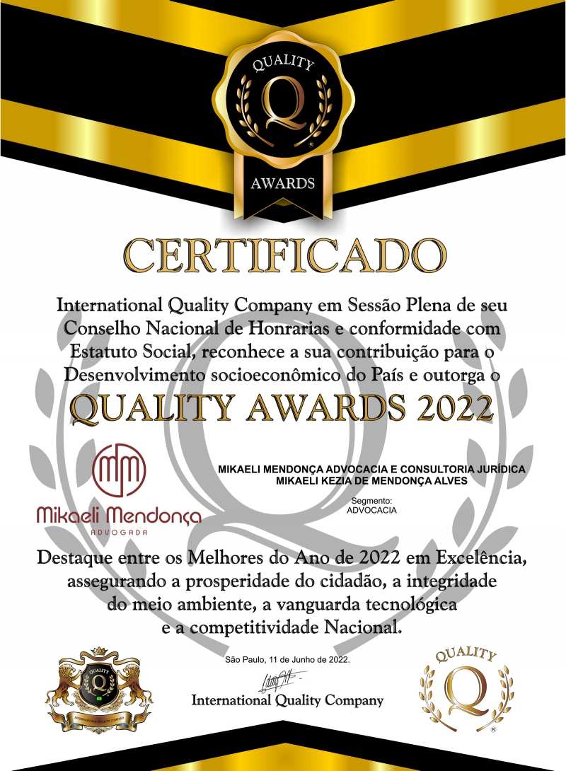 Outorga recebida pelo INTERNATIONAL QUALITY COMPANY 2022