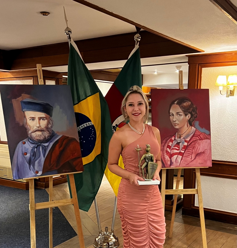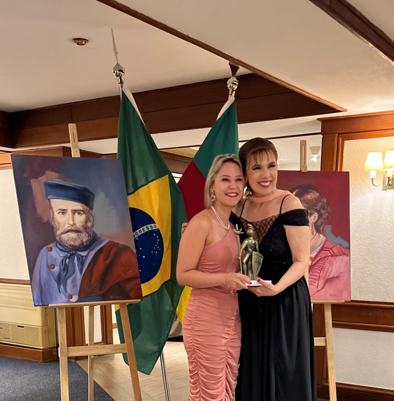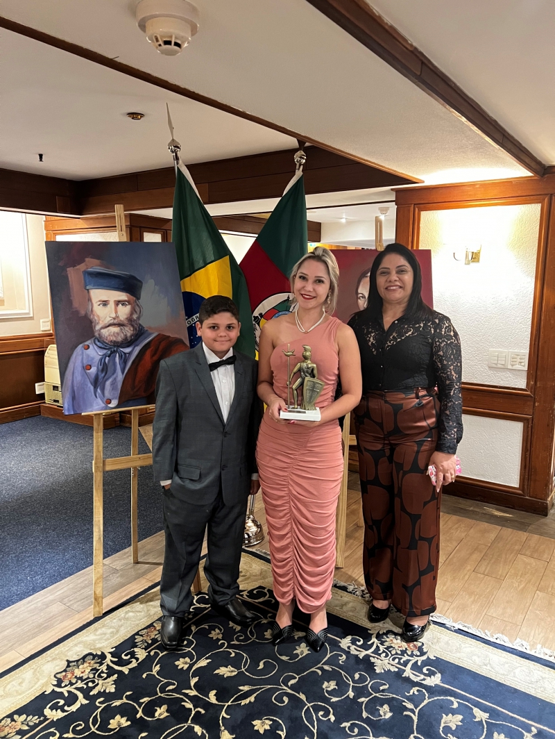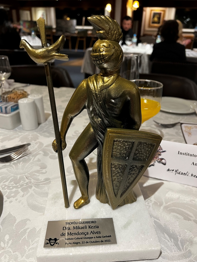 Instituto Cultural Giusepe e Anita Garibaldi homenageia a Dria Mikaeli Mendonça com o Troféu Guerreiro em evendo realizado em 21/10/22 em Porto Alegre.