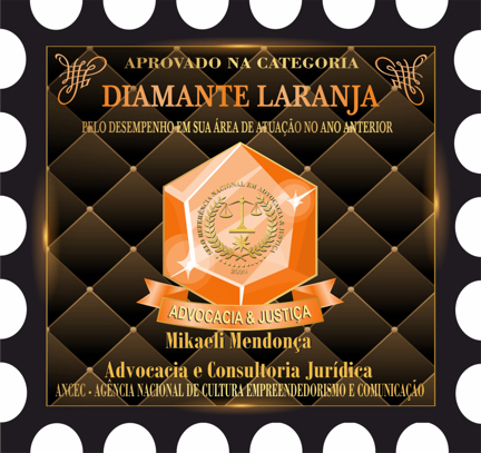 Em razão do trabalho desenvolvido, o escritório Mikaeli Mendonça – Advocacia e Consultoria Jurídica, foi agraciado pela ANCEC – Agência Nacional de Cultura, Empreendedorismo e Comunicação com o Selo referência Nacional 2024, pela 4 vez consecutiva. Aprovado na categoria DIAMANTE LARANJA pelo desempenho em sua área de atuação no ano anterior.